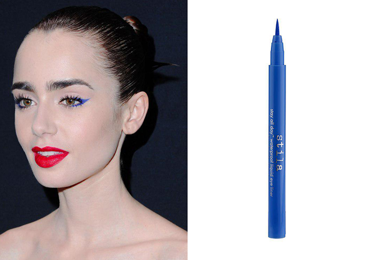 Образы Лили Коллинз – один лучше другого. Последняя тема для обсуждений: яркие графичные синие стрелки, сочетающиеся даже с алой помадой.