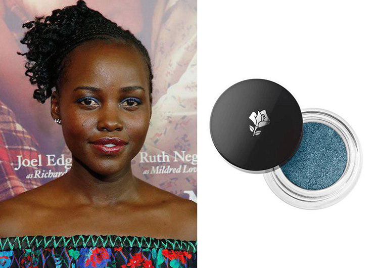 Классические приемы нанесения цвета также работают на «ура». Сочетание синих теней и глянцевой помады на Люпите Нионго кажется нам более чем удачным! Отложите в сторону черную подводку – здесь она вам не пригодится.