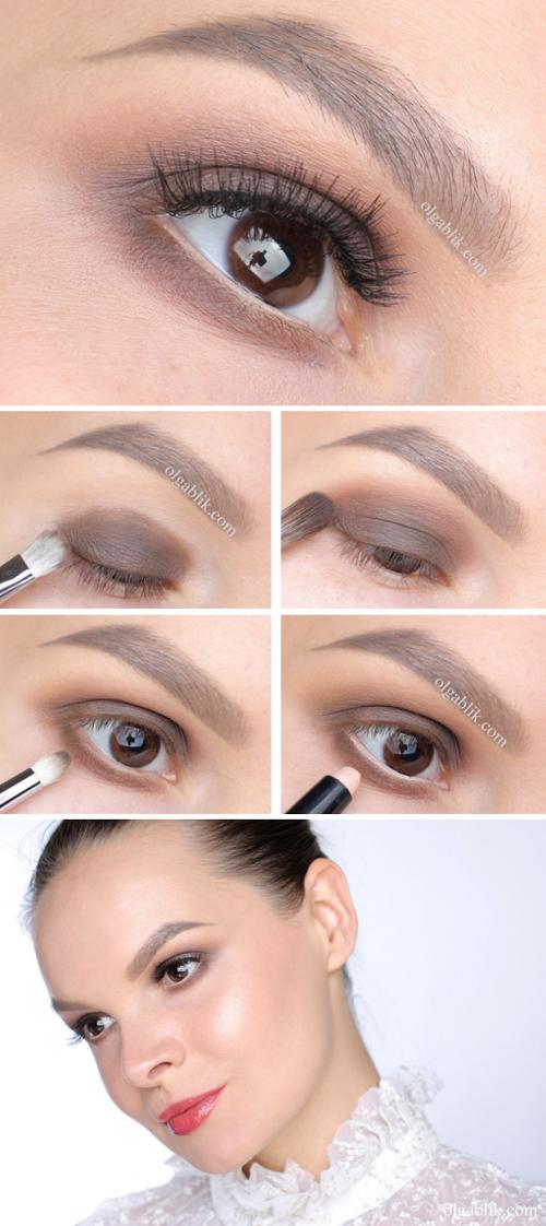 К данному мейкапу можно использовать коричневую или серую тушь.
