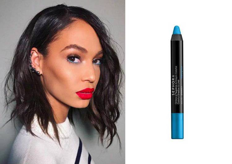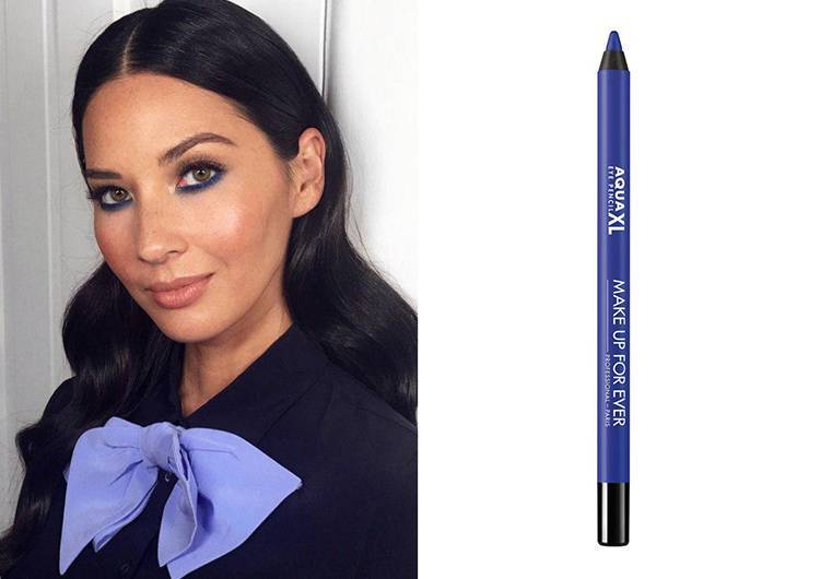 Еще один способ добиться вау-эффекта: подвести нижнюю часть глаза карандашом плотной текстуры и насыщенного синего оттенка. Так сделал визажист Оливии Манн Патрик Та. Не забудьте предварительно скрыть неровности и синяки под глазами консилером.