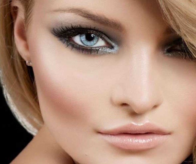 Что касается цвета кожи, то голубой оттенок подходит людям со светлой кожей. Цвет волос также играет определенную роль. Синий макияж особенно гармонично сочетается с черными волосами или, наоборот, с прядями холодных оттенков (жемчужный блонд, платина и т.д.).