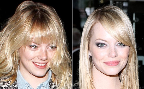 Молодая актриса Эмма Стоун (на фото) не перестает удивлять фото-метаморфозами своей внешности: блондинка, шатенка и рыжая в одном лице. Обладательница яркого и запоминающегося облика, девушка умеет эффектно подать себя при помощи грамотного макияжа. Благодаря красивым губам и восхитительному взгляду, Эмма может свободно перемещать акценты, выполняя мейкап. Ее излюбленный образ – голливудский ретро-стиль: черная подводка, заканчивающая стрелками, идеальная фарфоровая кожа, ярко-красные губы.
