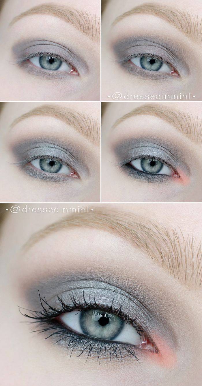 Дымчатый макияж добавляет глубины серым глазам. Блондинкам рекомендуем бирюзу, фиолетовые, розовые и серебристые тона. Будьте осторожны с синим цветом, особенно, если у вас есть проблема «темных кругов» под глазами.