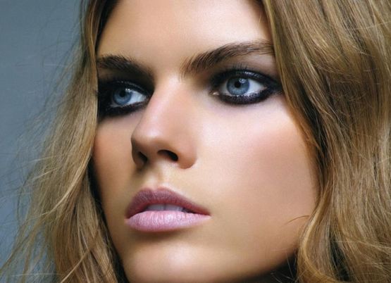 Обязательно выровняйте тон кожи, ведь дымчатые глаза сделают все мелкие недостатки заметнее. Освежите форму бровей.