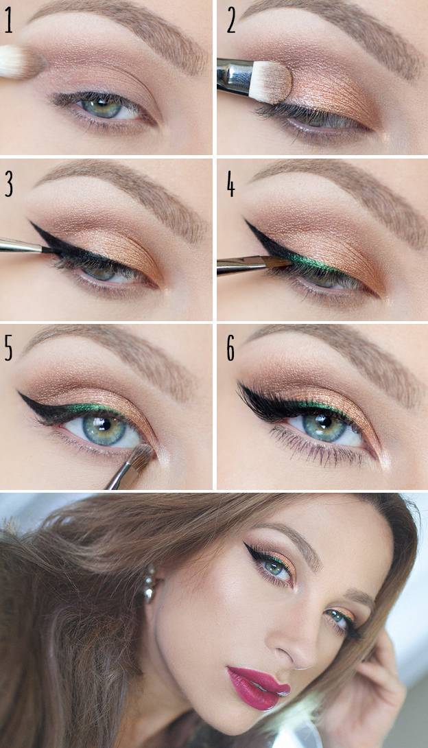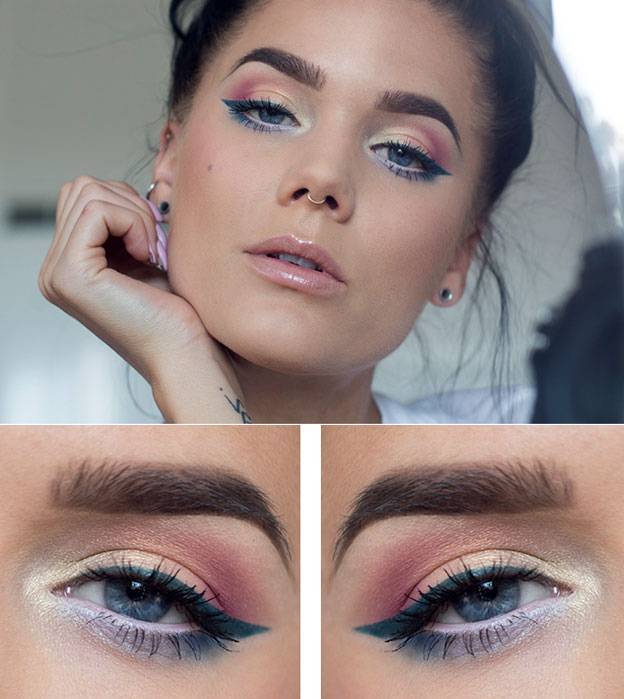 Также можно поэкспериментировать и использовать яркие подводки — голубую, синюю или фиолетовую. А вот зелёного цвета лучше избегать как в подводке, так и в тенях. Единственное исключение — тёмный изумрудный оттенок.