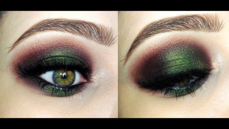 - Зеленые глаза. Если вам посчастливилось стать обладательницей глаз с таким волшебным цветом, то вам прекрасно подойдет смоки в зеленых и шоколадных тонах. Также, если ваша кожа бледная, вам подойдет фиолетовый и золотой оттенок теней.