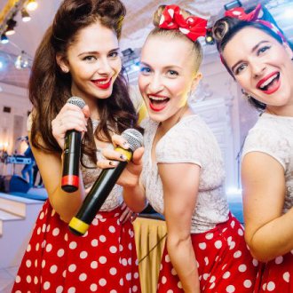 Отдельное внимание хочется обратить на характерные особенности одежды. Чтобы ретро-образ получился гармоничным, дополнить визаж для тематической вечеринки можно облегающим платьем с подчеркнутой линией талии или надеть мини-платьице с облегающим лифом и пышной юбочкой покроя «солнце-клеш». Отличным завершением образа станут эффектные аксессуары – яркая брошь, косынка-ободок, клипсы, бусы
