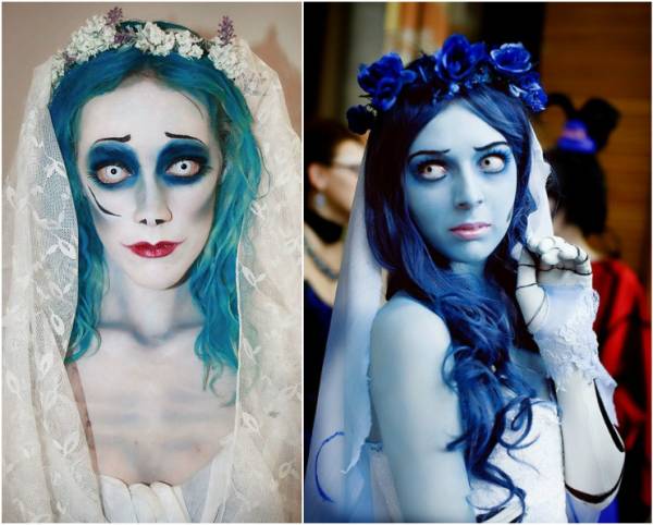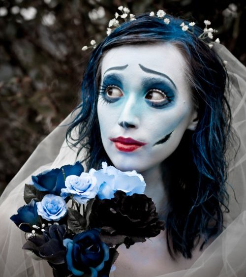 Распределите его по всей поверхности лица и не забудьте про шею и зону декольте, которые по цвету не должны отличаться от лица. В качестве вдохновения вам пригодится образ главной героини из мультфильма «Труп невесты» Тима Бертона – ее кожа отливает той самой синевой, которая нужна и в реальном образе на Хэллоуин.