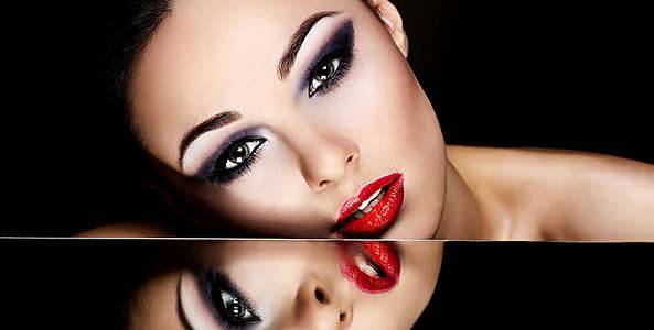 В отличие от дневного, вечерний макияж должен быть ярким, торжественным и нарядным. Яркий тон глаз имеет значение сочетаться с тоном губ, волосы с бровями. Поскольку в вечернее время не хватает света, глаза выделяют темным карандашом, подводя стрелки. Губы темным блеском или матовой яркой помадой.