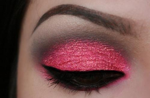 Эта новая тенденция, за сравнительно короткий промежуток времени стала довольно востребованной, при этом смогла стать достойной заменой натуральным приемам в макияже, которые уже немного надоели. Чтобы создать макияж в стиле фуксии, вполне достаточно будет немного растушевать тени серо-розового оттенка по направлению от ресниц и к бровям. Можно добавить небольшое количество теплых румян на область скул, на кубы наносится легкий блеск или помада нежного оттенка.