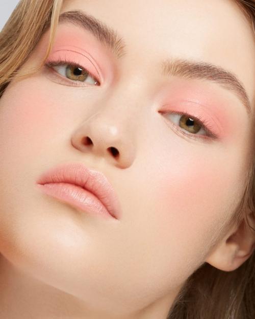 Используйте ее для век, щек и губ. Для более яркого эффекта наносите средство в несколько слоев. Пример макияжа, при котором используют только розовую помаду, – в нашем .