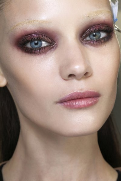 Когда-нибудь слышали про розовые смоки айс? Тени в фиолетово-розовых оттенках или в цвете фуксия справятся с задачей не хуже черный и серых. Накрасьте глаза в несколько слоев, далее растушуйте тени до бровей (не бойтесь накрасить их тоже), а можете даже до висков – это последний модный тренд.