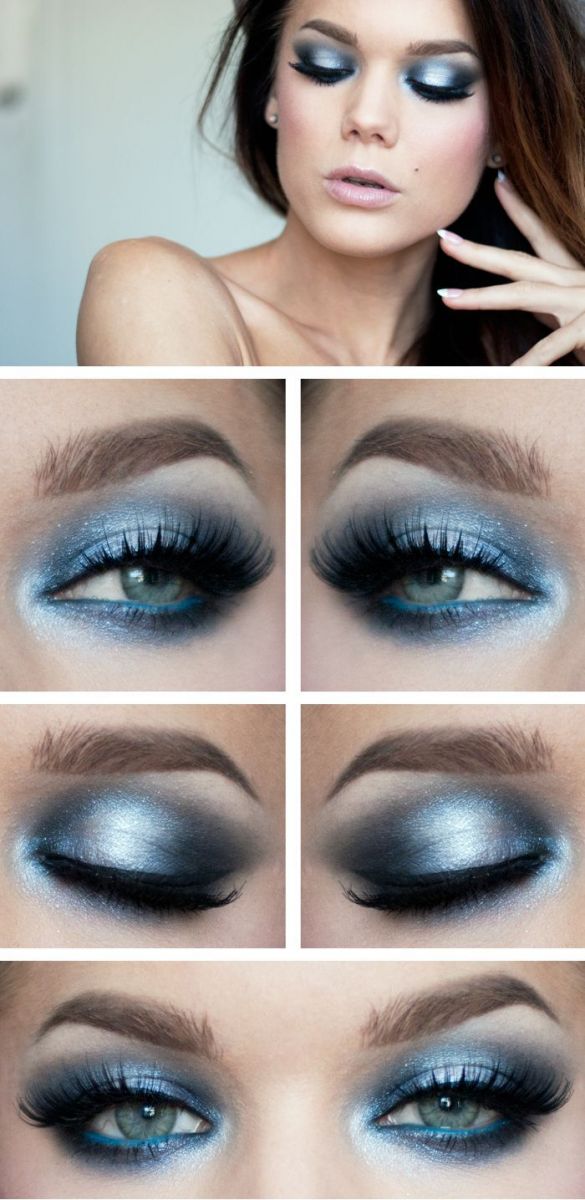 Для идеального насыщенного серого окраса глаз подойдут холодные темно-синие, черные и металлические темные оттенки в макияже: