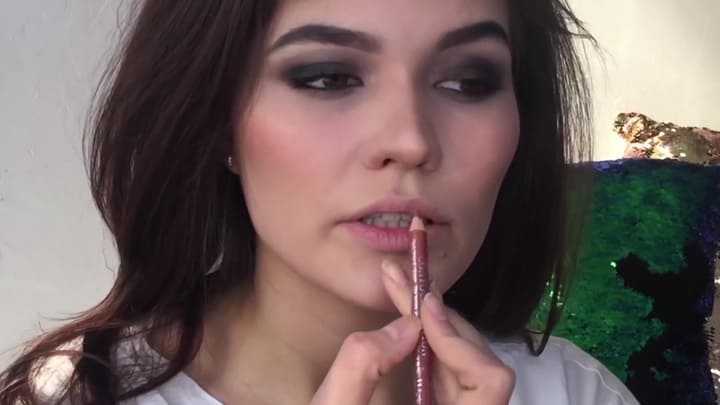 Подчеркните контур губ темно-коричневым карандашом, затем воспользуйтесь коричневой помадой.