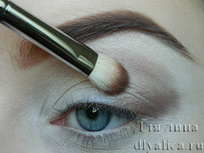 Сначала немного покрываем верхнее веко во внешнем уголке, а затем уводим тень выше вашей натуральной складки.