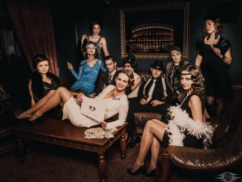 Что касается самого сценария праздника, то наиболее распространенной вариацией является импровизация воссоединения двух мафиозных кланов. В качестве развлечений для гостей можно организовать танцевальный марафон в стиле буги-вуги или твиста, карточные фокусы, импровизированное казино и так далее.