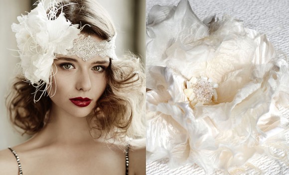 - украшения на голове – тонкие повязки с роскошными цветами, оригинальные заколки, атласные ленты, перья, фетровые банты;