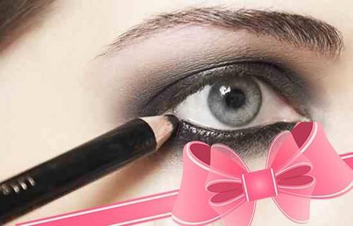 - В ход вступает черный карандаш, которым прорисовывается линия вверху, выходящая за грань глаза и внизу, проходящая строго по линии роста ресничек. Обе черты растушевываются.