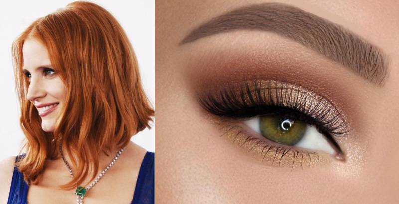 Рыжеволосые зеленоглазые девушки встречаются не так часто, их раньше считали колдуньями. Для визажа лучше использовать бронзовые, оливковые, салатные оттенки: смотря какие из них гармонируют со цветом радужки. Слишком контрастные сочетания лучше не выбирать.