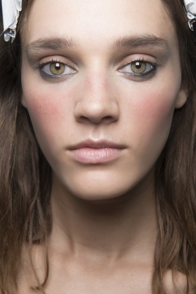Щеки не должны привлекать особого внимания, поэтому на них лучше нанести светло-коричневые румяна. Такие нежные очертания помогут скорректировать овал лица и придадут ему свежий вид. В помаде стоит отдать предпочтение темным акцентам, например: коричневому или красному.