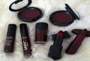 - Темно-красная палитра помад. При желании также можно использовать коричневую или черную помаду. Самый темный тон допустимо применять, если предполагается пойти в готический клуб. При других обстоятельствах это будет смотреться чересчур преувеличенным.