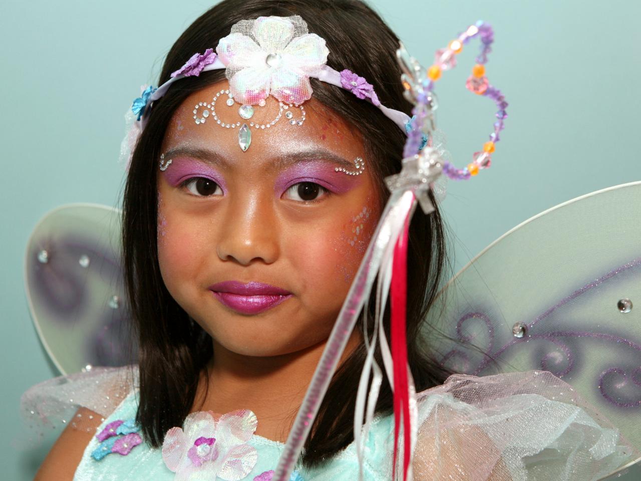 Пошаговое выполнение макияжа доброй феечки для девочек на Хэллоуин: