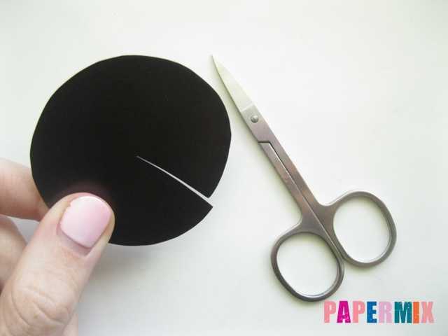 Делаем надрез с края и до середины круга, чтобы затем сделать из такой плоской фигуры в виде окружности объемную.