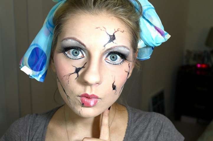 Достаточно простой в исполнении макияж иллюстрирует старую фарфоровую куклу, забытую нерадивой хозяйкой. Для воплощения достаточно светлого тонального крема и теней, черного карандаша для изображения «трещин».