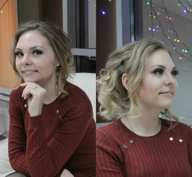 Берём еще одну прядку с нашего верхнего пучка и проделываем тоже самое. У меня был небольшой запас шпилек, к тому же не хотелось много железа в голове Я некоторые прядки просто просовывала под свои же залаченные волосы, все хорошо — так тоже держится. В итоге — у нас остаются пряди только у лица. Мы их слегка завиваем, и вуаля. Причёска, как у Веры Брежневой готова