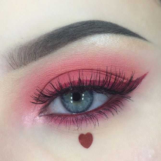 Красные тени очень яркие и броские. Они используются в основном для сочетания с другими, чтобы усилить другой цвет или подчеркнуть его глубину. Но красный самодостаточный цвет, поэтому его можно наносить как самостоятельные тени. Но здесь нужно быть внимательным, так как неправильно подобранный оттенок сделает глаза воспаленными.