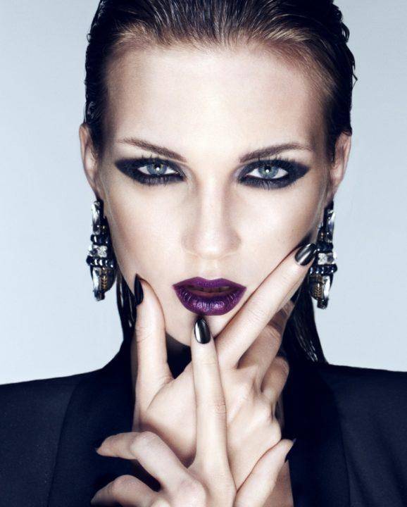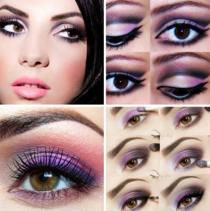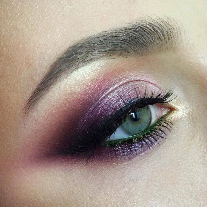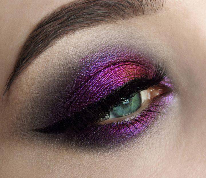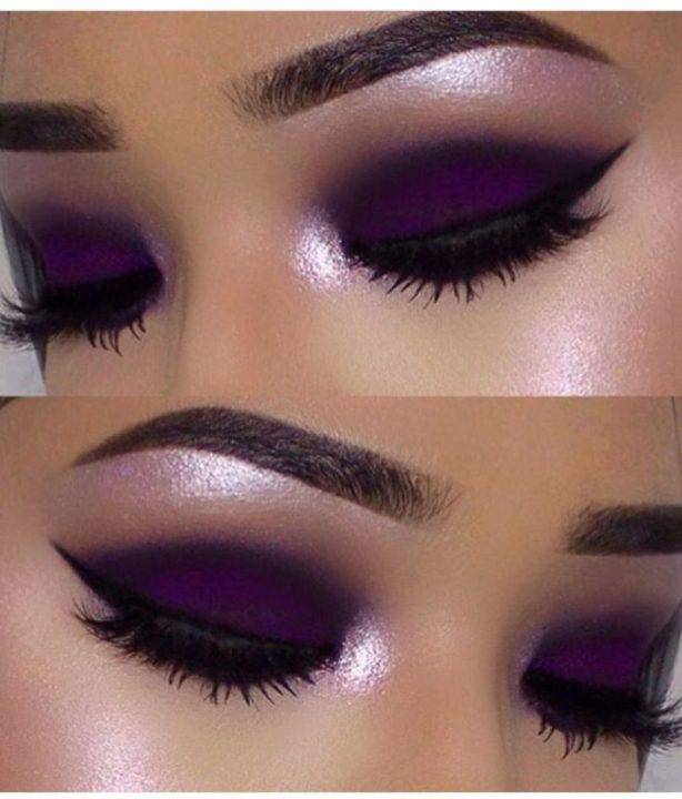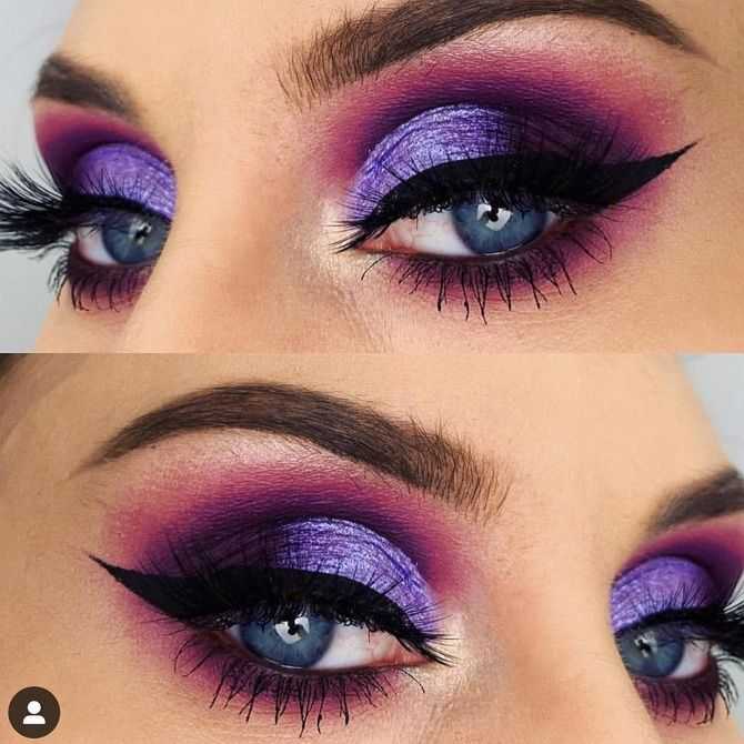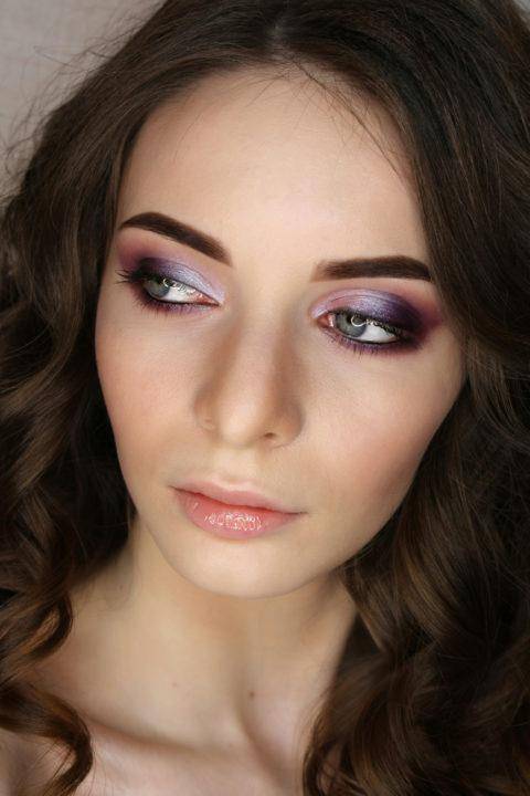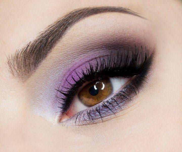 Вы можете использовать фиолетовые тени с глиттером, с шиммером или матовые виды. Фиолетовые тени хорошо сочетаются с черным карандашом и черным цветом туши. Благодаря насыщенному и глубокому цвету глаза визуально становятся больше. Только для этого стоит наносить тени в дымчатой технике.