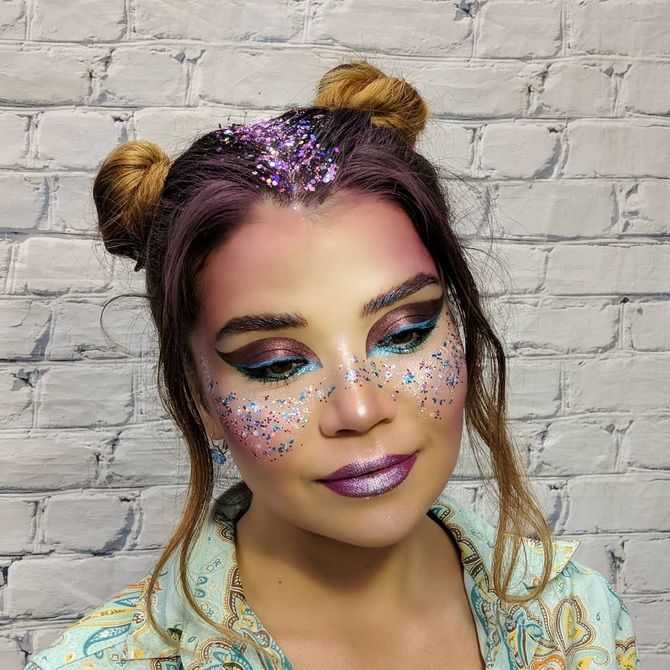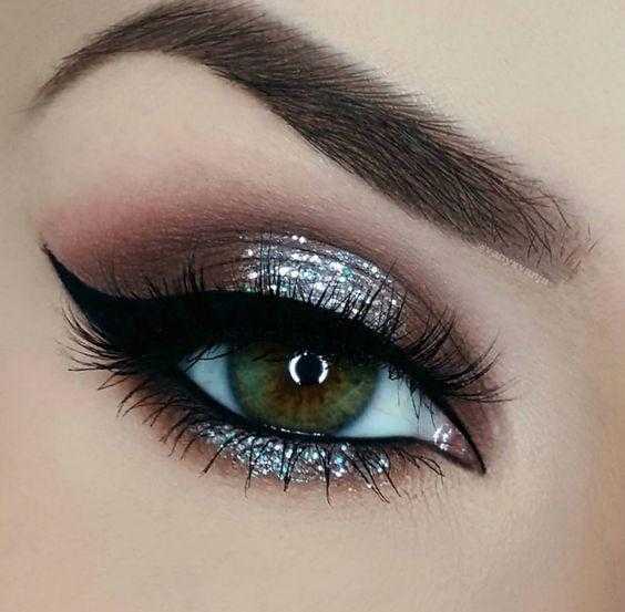 Сами блестки могут содержаться в тенях, карандаше для стрелок, помаде и даже в пудре. Необязательно использовать всю косметику с блестками, а можно сделать гармоничное совмещение с классической.