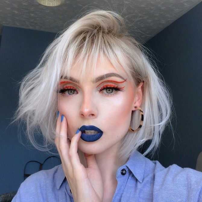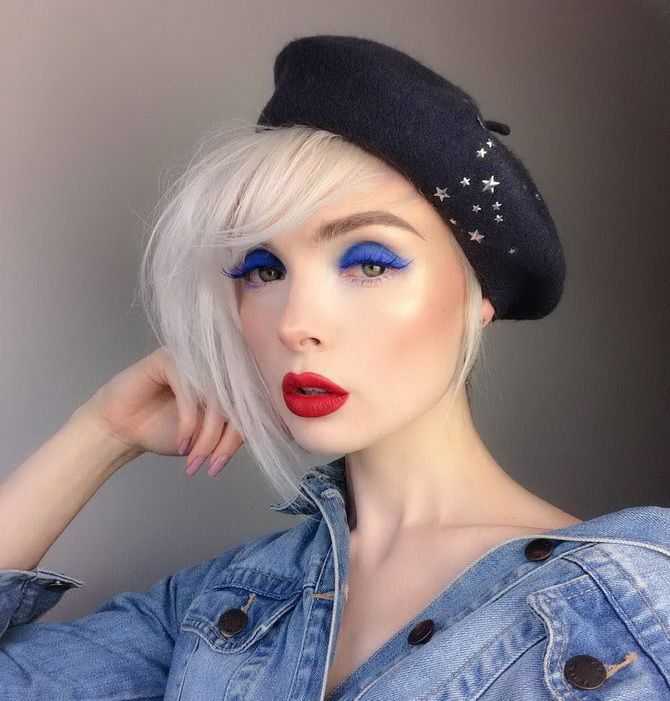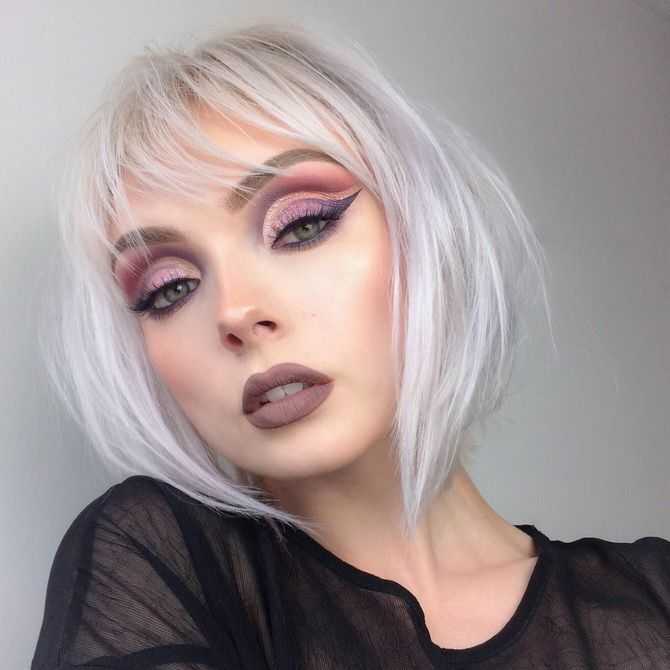 Но не обязательно использовать только классическое нанесение цвета. В вашем распоряжении любые цветные тени или ахроматические тона. Только старайтесь хорошо растушевывать место слияние цветов.