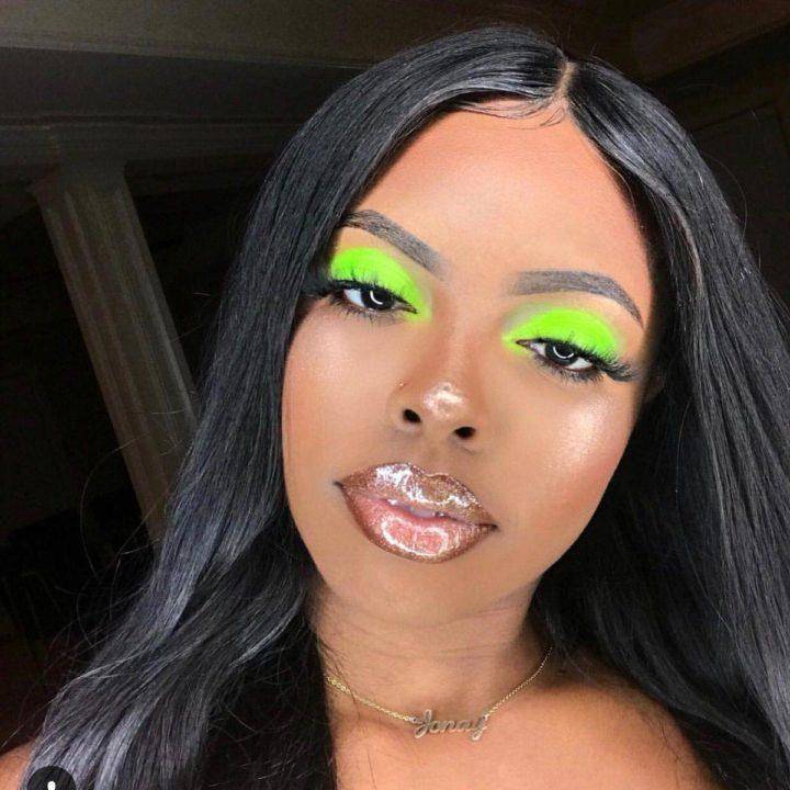 В другом варианте в качестве неонового макияжа будет актуальным использовать специальные косметические средства, которые содержат микроэлементы, светящиеся в ультрафиолете.