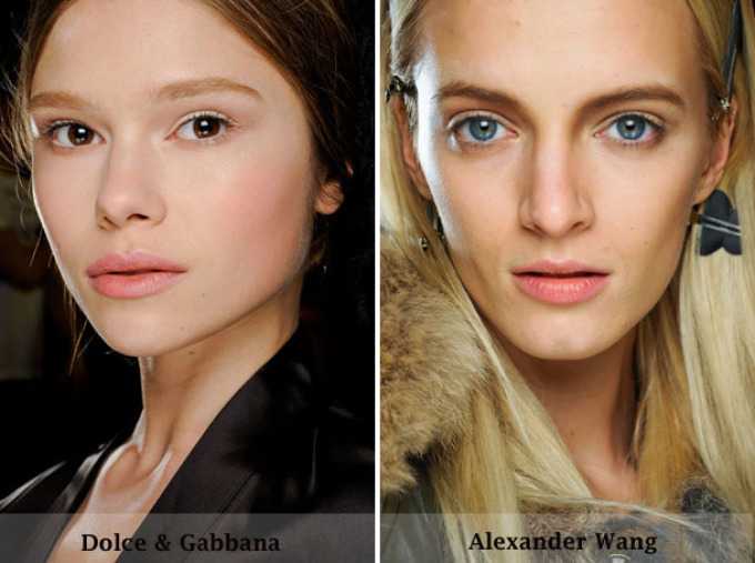 Прослеживается стиль нюд на моделях Antonio Berardi, здесь даже имитирована будто воспаленная граница. Christian Dior добился желаемого эффекта естественной формой губ модели и светлой помадой, John Galliano, похоже, вовсе не использовал косметические средства.