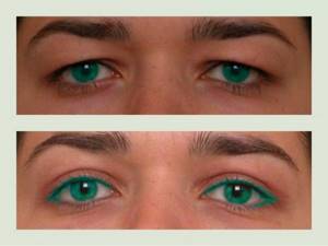 Посредством данной манипуляции можно сузить глаза, придав им миндалевидную («кошачью») форму.