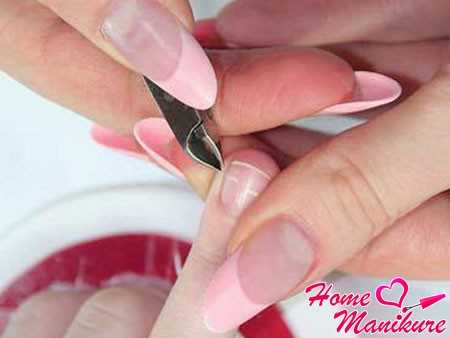 - форму ногтей лучше выбирать закругленную, без острых краев с длиной не более 2 мм;