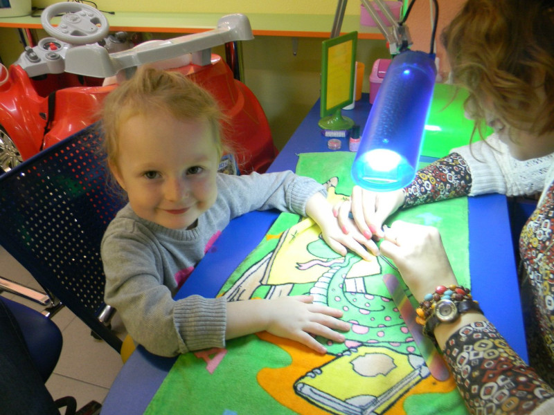 - Ногтевой дизайн. Эта процедура проводится после гигиенического маникюра и заключается в художественном оформлении ногтевых пластин девочки. Ее нельзя назвать особенно необходимой и полезной, с ее проведением можно повременить. Но если малышка хочет еще больше походить на свою маму или подчеркнуть собственную индивидуальность, первый рисуночек на ноготках можно сделать ей в 5 лет