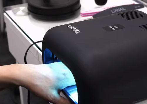 После того, как нанесете базовое покрытие, поместите пальчики в УФ-лампу на 2 минуты Обратите внимание, что ее мощность должна быть не менее 36 W, иначе шеллак должным образом не полимеризуется. Далее вам нужно накрасить ногти цветным покрытием