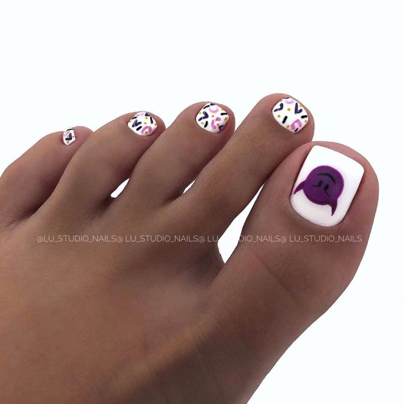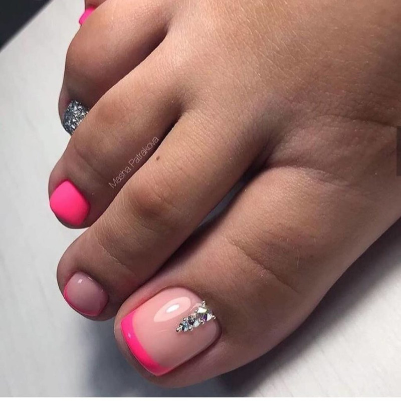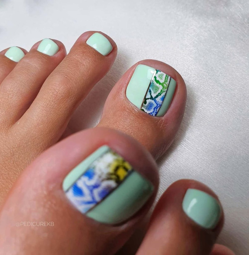 Красивый маникюр и педикюр в разных оттенках может сочетаться прокрашенными лунками, техникой французского нейл-арта, омбре, а также иметь повторяющийся рисунок, геометрический узор, полоски, горошек.