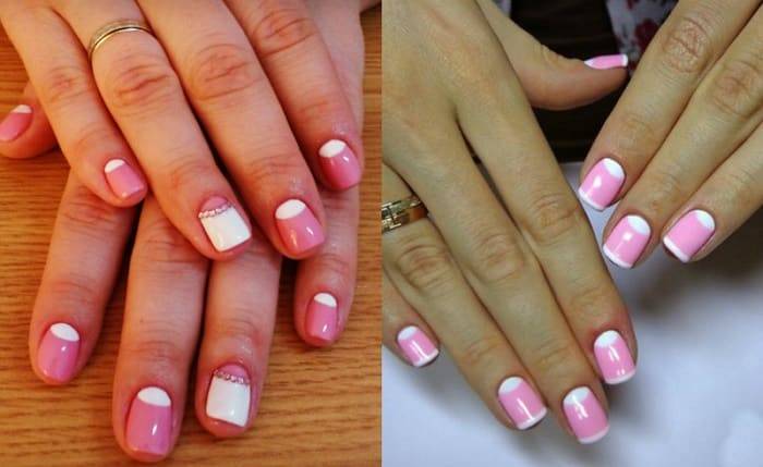 Светлые оттенки розового, особенно если сочетать его с белым, подойдут для неброского маникюра на каждый день. Для более смелых дам можно использовать насыщенно розовые тона, которые отлично будут контрастировать с белым.