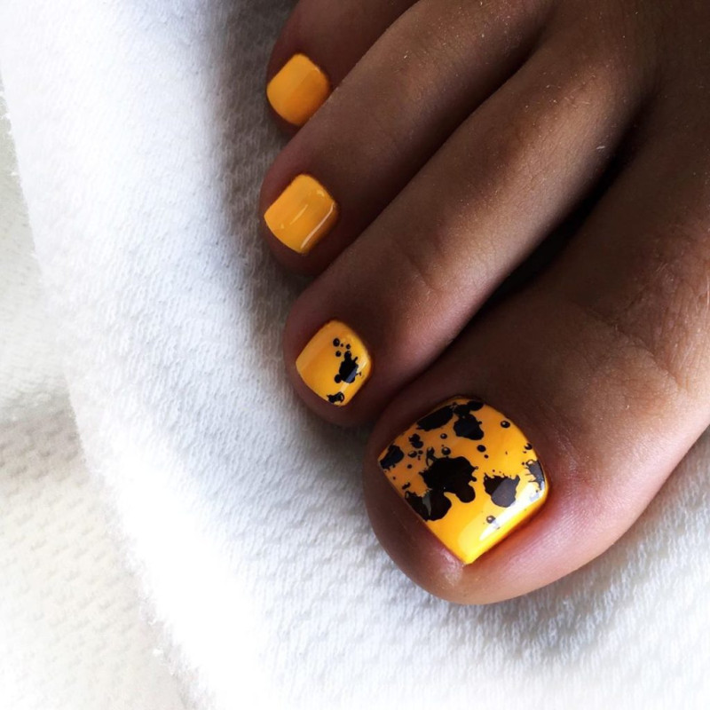 Если делать выбор в пользу однотонного дизайна маникюра и педикюра, то этим летом однозначно следует выдирать насыщенные и яркие оттенки желтого или оранжевого цвета. Эта солнечная палитра прекрасно сочетается с загорелыми ручками и ножками. Модный желтый и оранжевый маникюр и педикюр на лето 2024 точно не будет выглядеть скучно и однообразно. Сам цвет не позволит остаться без внимания.