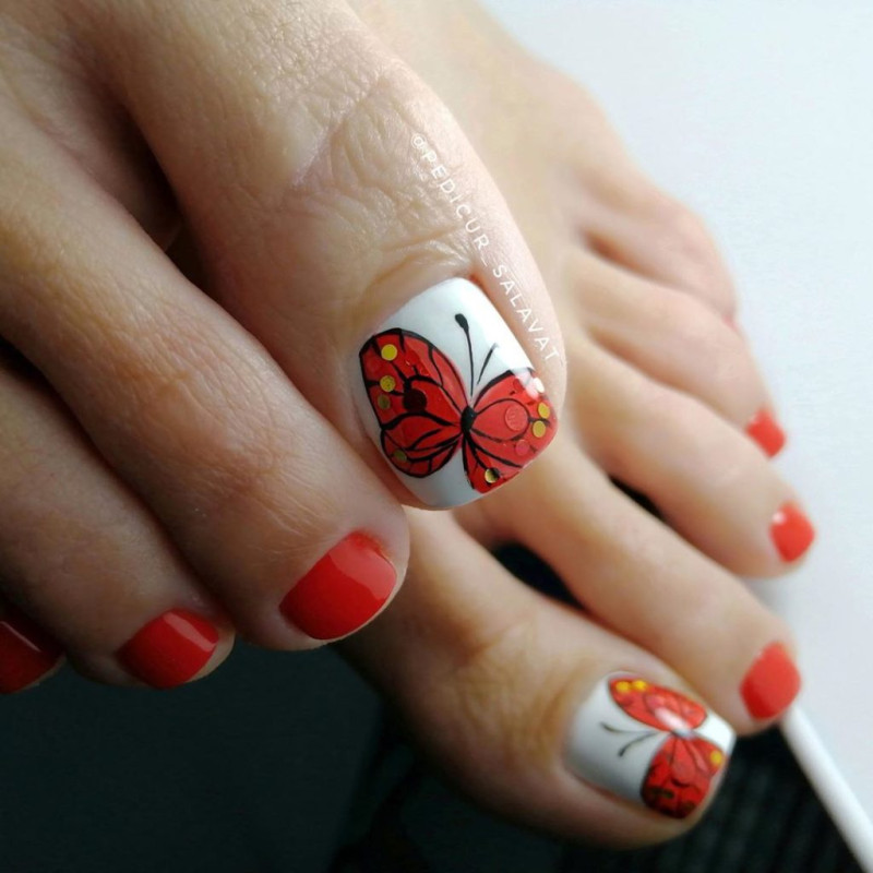 Начиная с весеннего нейл-дизайна, все большую популярность среди романтических рисунков на ногтях обретают милые бабочки. В летнем педикюре и маникюре 2024 бабочек рисуют различными техниками, это может быть и ручная роспись, и простой стемпинг, и красивая акварель, и даже инкрустация стразами.