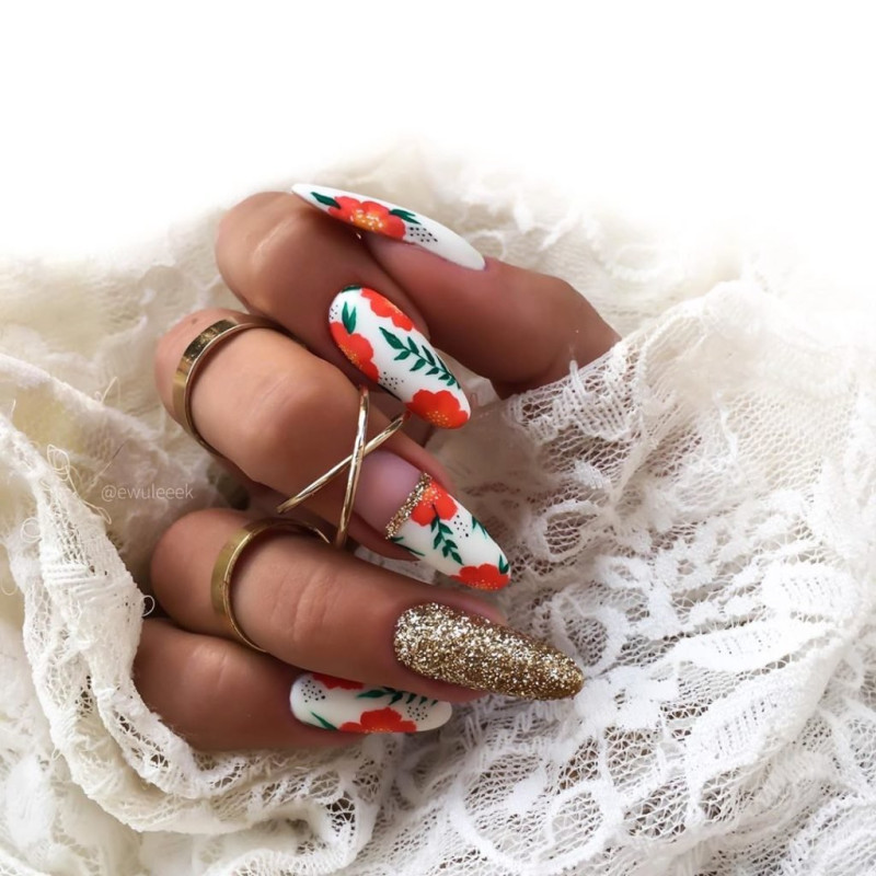 - Растительные мотивы и бутоны как никогда будут востребованы в весеннем маникюре.