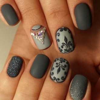 Серый. Универсальная палитра, которая будет стильно и интересно смотреться в любом дизайне. Однако, в данном случае нужно правильно подобрать оттенок, дабы не подчеркнуть на руках имеющиеся пигментные пятна.