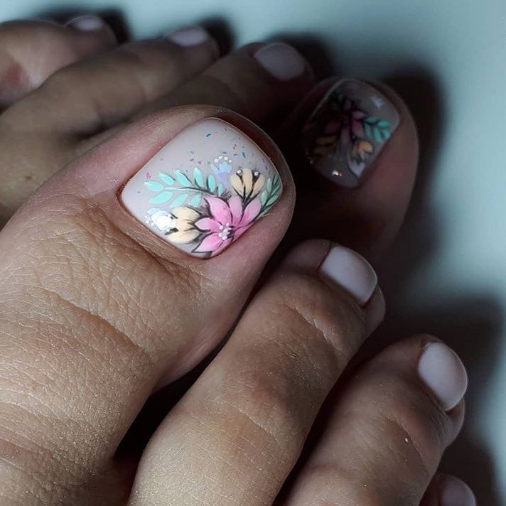 Красивые цветы на ноготках рук и ног никого не оставляют равнодушной уже который сезон подряд. Раньше цветочные узоры чаще сочетали с френчем и лунками. Этим летом модный маникюр и педикюр с цветами больше напоминает красочное полотно с цветочным принтов в винтажном стиле.