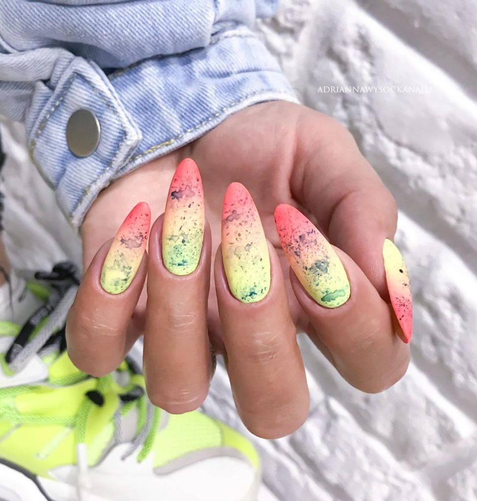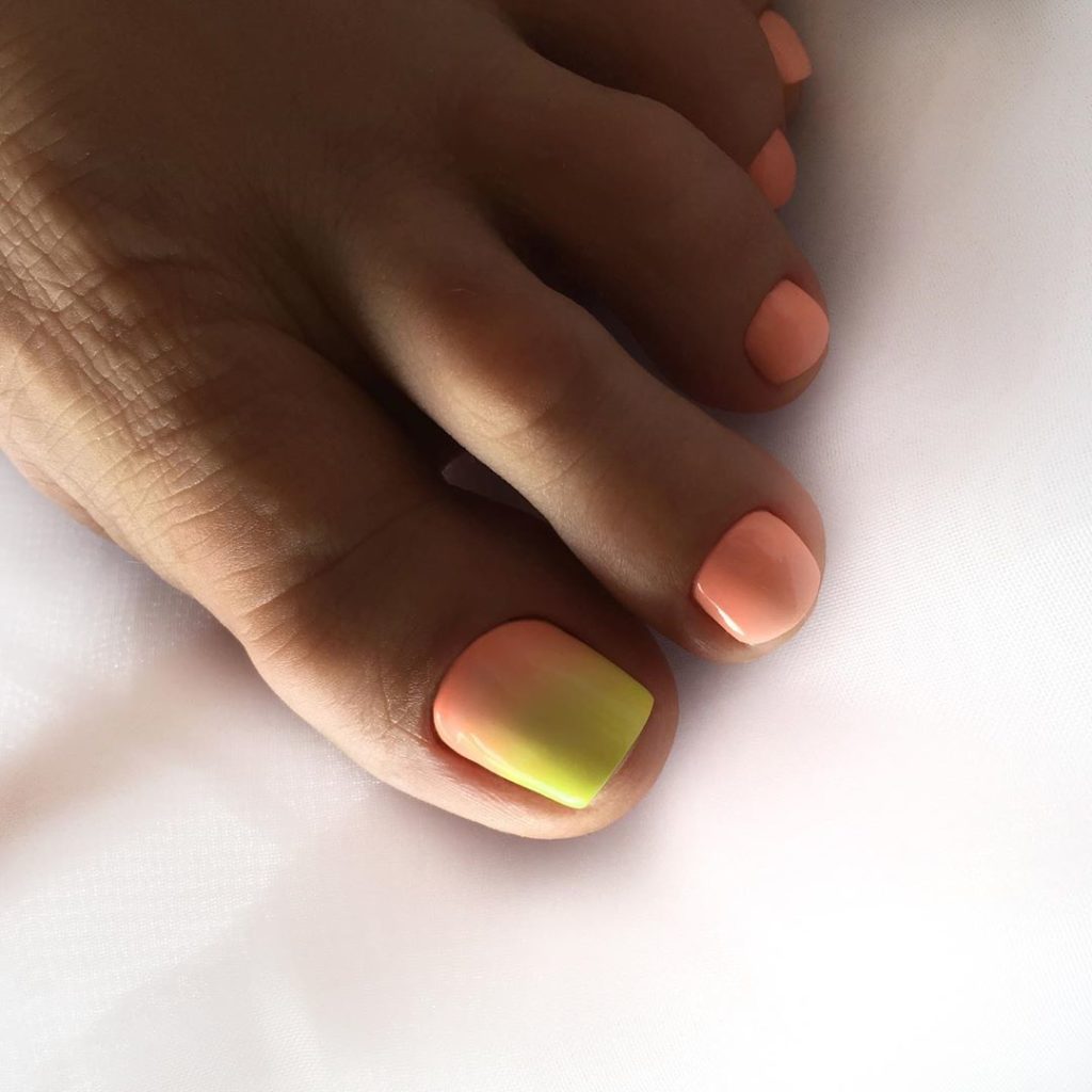 Следующим летним нейл-трендом маникюра и педикюра 2024 выступает яркий градиент или эффект омбре. Особенно актуален подобный переход с кислотными оттенками и в матовом исполнении. Красиво с градиентом на ногтях будут смотреться брызги краски или металлизированные полоски. В последнем варианте летний маникюр и педикюр будет выглядеть очень стильно и современно.