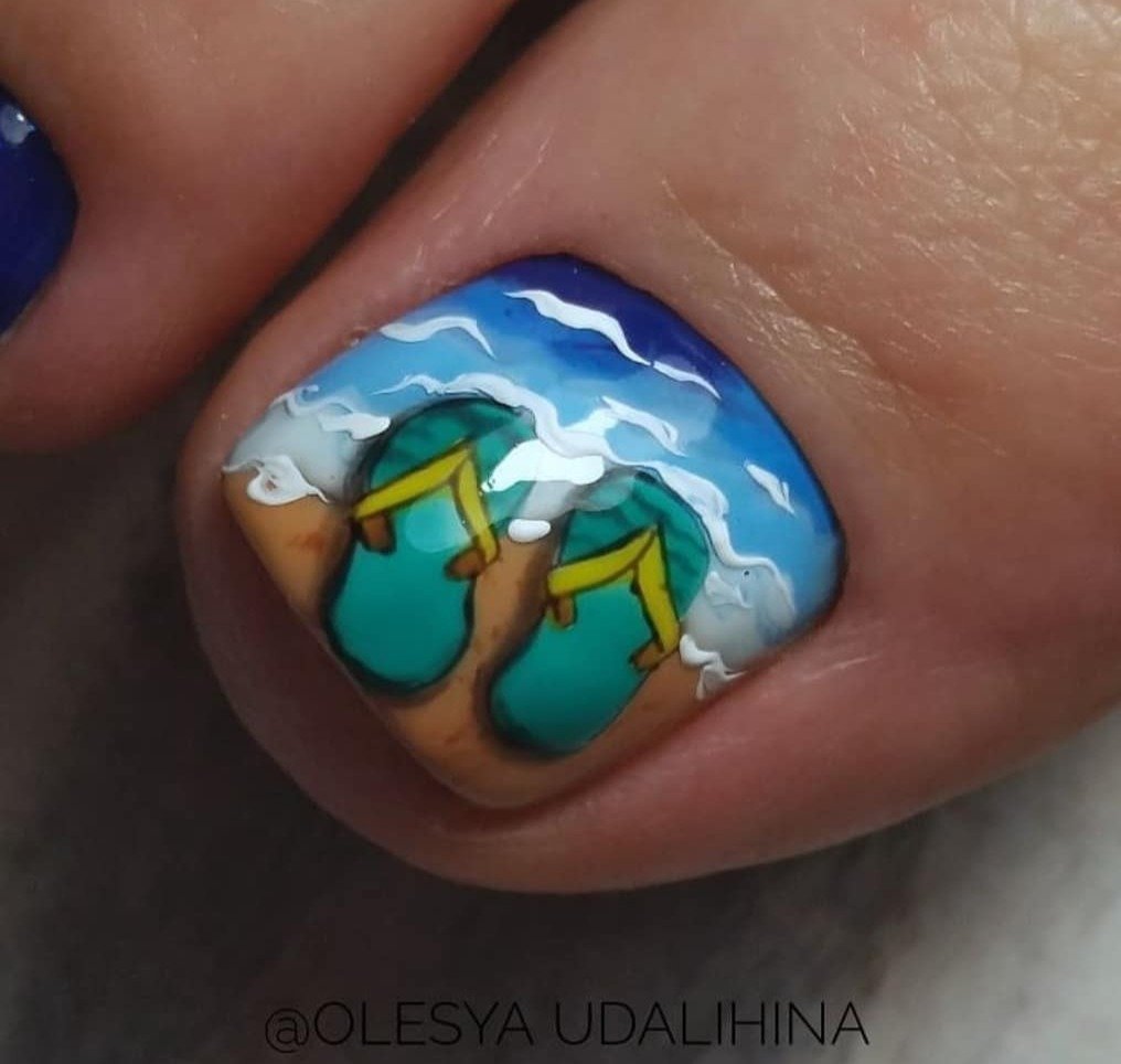 Летний маникюр и педикюр – сочетания разных техник дизайна ногтей