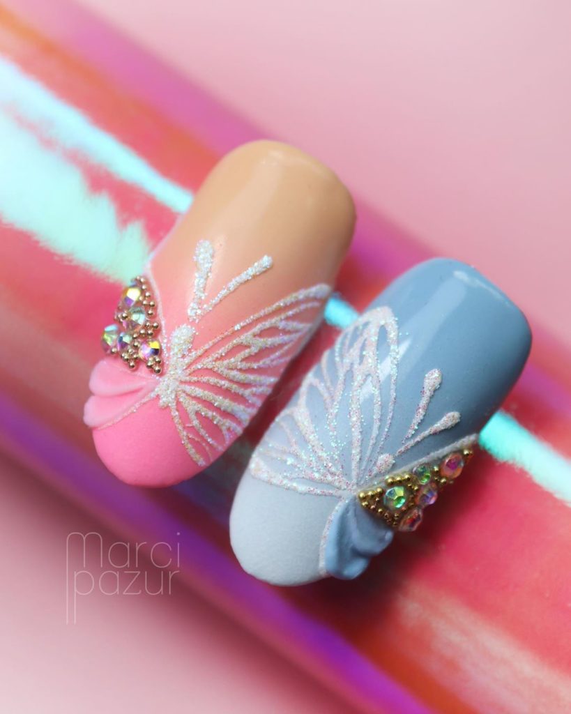Начиная с весеннего нейл-дизайна, все большую популярность среди романтических рисунков на ногтях обретают милые бабочки. В летнем педикюре и маникюре 2024 бабочек рисуют различными техниками, это может быть и ручная роспись, и простой стемпинг, и красивая акварель, и даже инкрустация стразами.