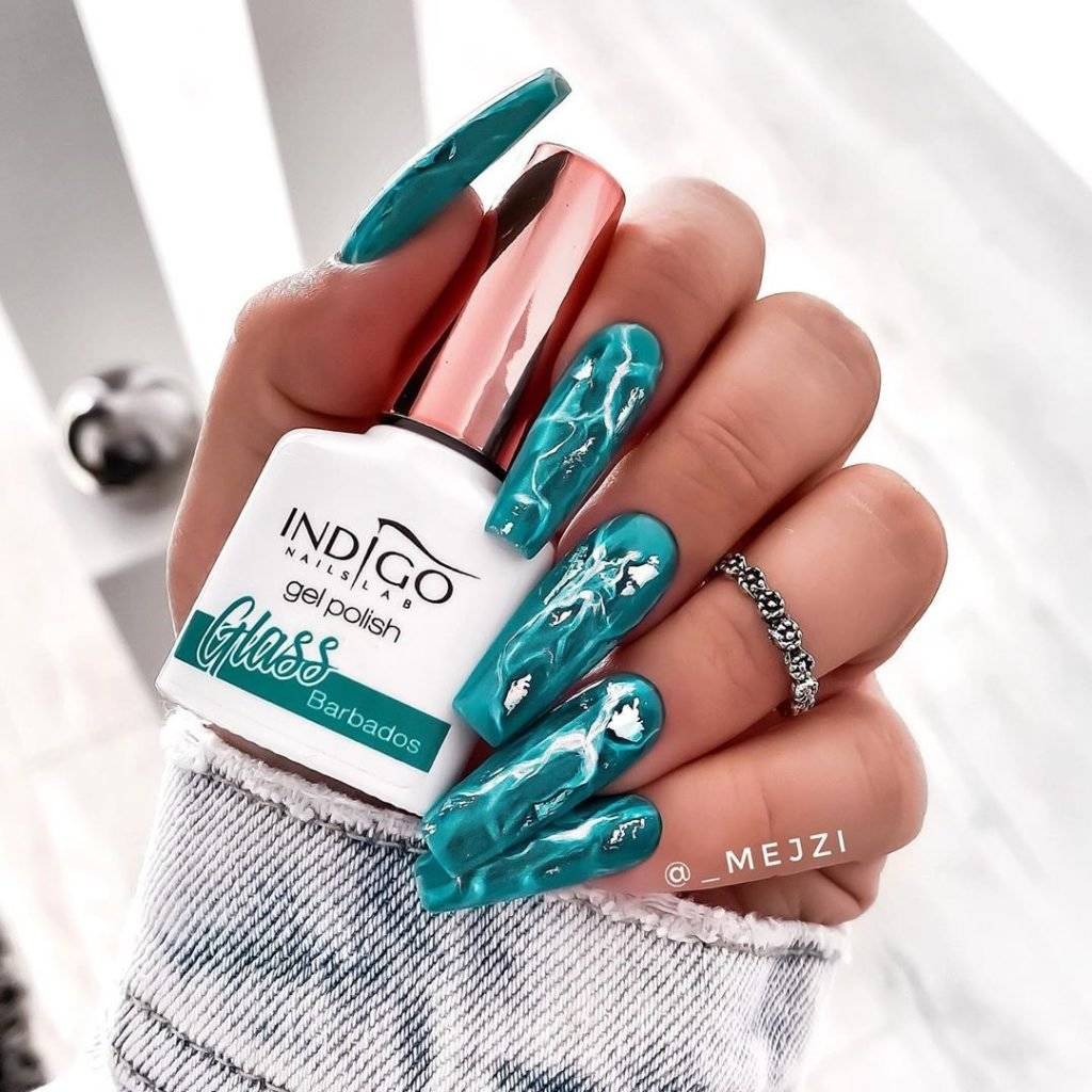 - Лидирующими станут вся зеленая цветовая гамма и цвет хаки для дизайна ногтей.